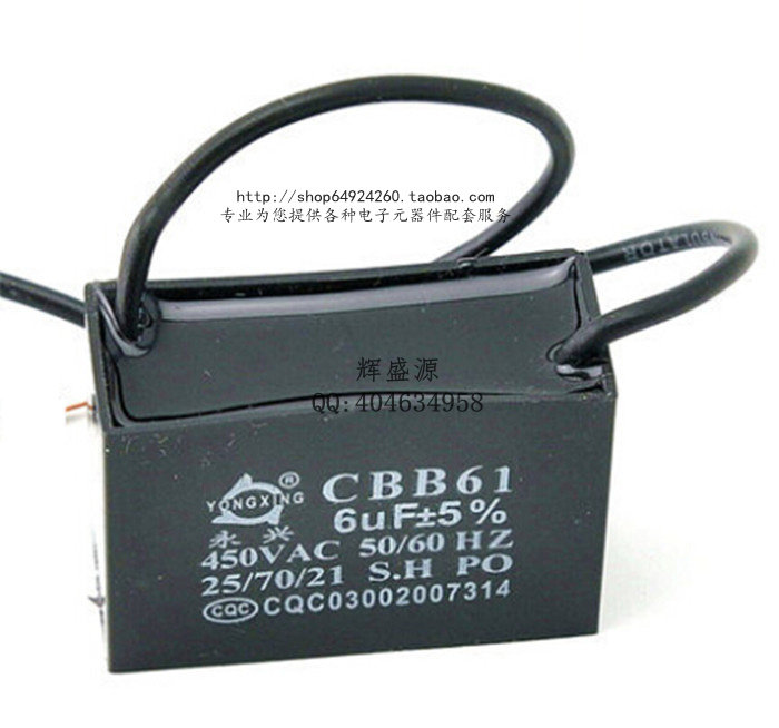 Start capacitor CBB61 6 0UF exhaust fan fan start capacitor 6UF 450V lead length 10CM