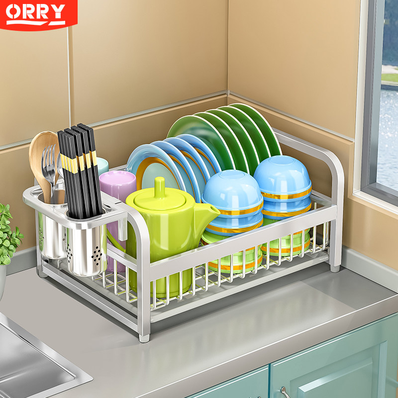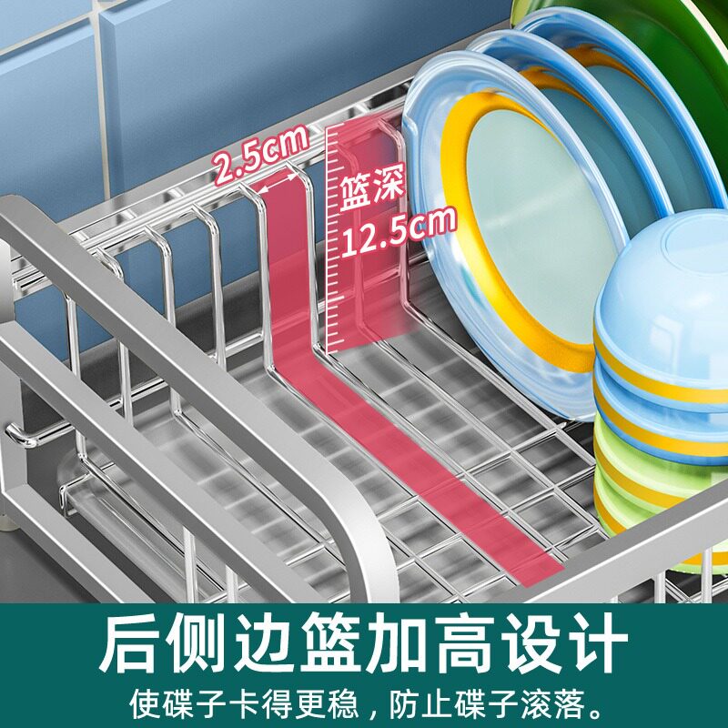 Single-layer 304 stainless steel bowl rack 1-tier dish rack drain basket kitchen rack kitchen cabinet bowl chopsticks storage rack bowl basin