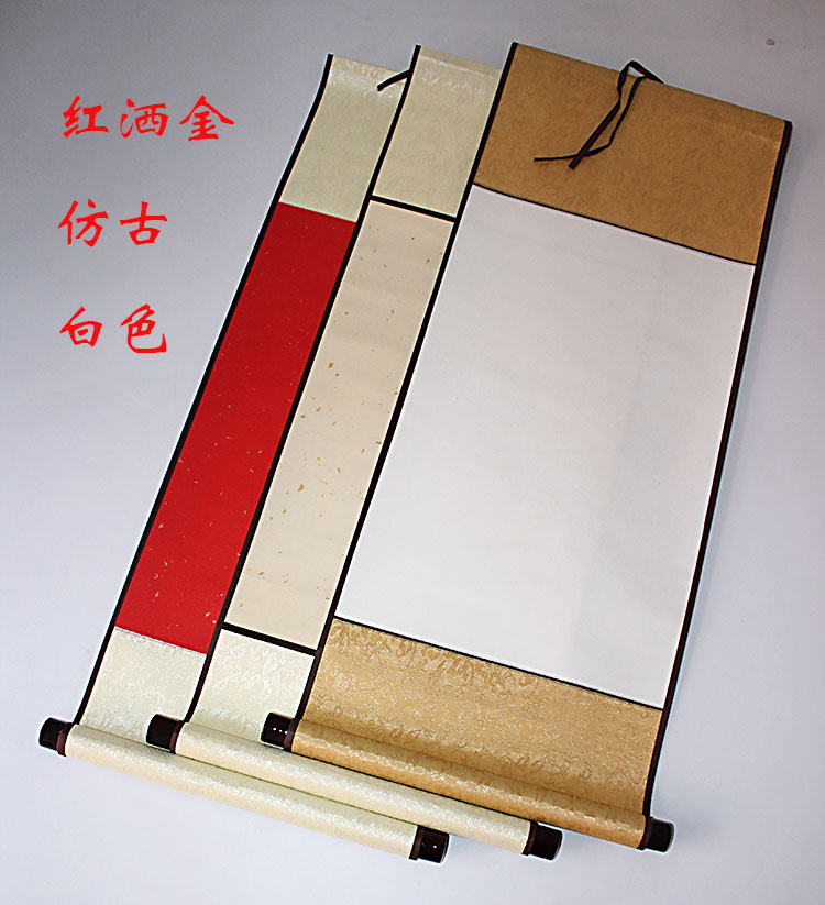 All-in-four-ruler six open blank hanging shaft Calligraphy Country Painting Antique Red Sprinkle Gold Wax-dyed Calendar Paper Mini Painting Scroll