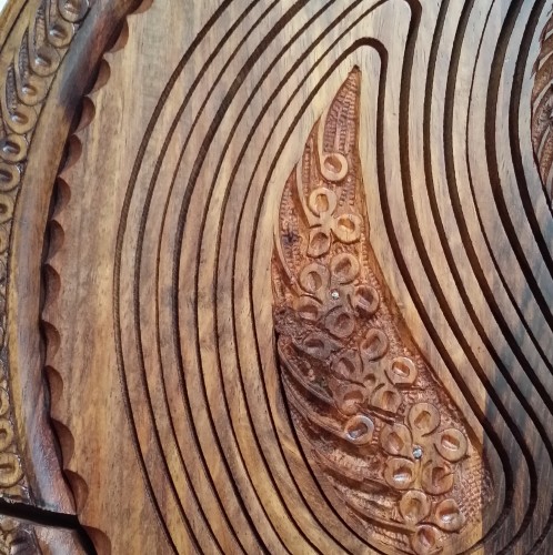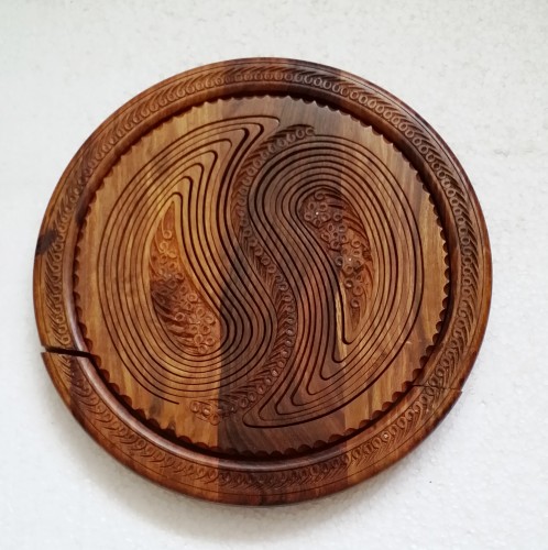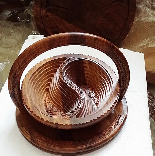 12 inch handmade walnut wood garden shaped fruit blue basket Pakistan wood carving craft gift new model