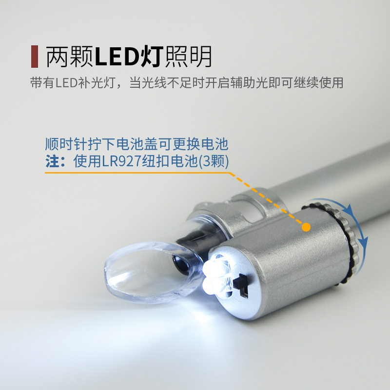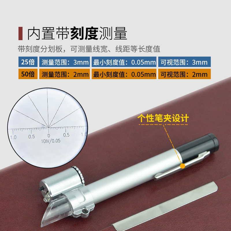 25 times 50 times with scale reading measurement Pen magnifying glass with lamp microscope High magnifying glass Pen microscope Identification Coins Textiles Prints Porcelain stamps Text play Jewelry