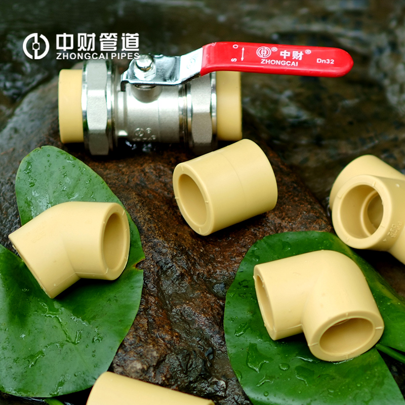 Zhongcai PPR hot water butler decoration curry color water supply pipe fittings series PPR straight-through joint pipe connection