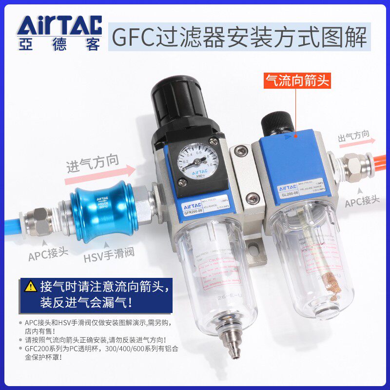 Original Yadker pneumatic gas source treatment two-piece GFC300 400 600 pressure regulating filter oil-water separator