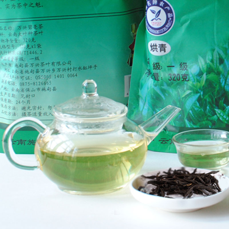 Yunnan Shidian Wanxing Bihao Green tea First-class baked green 320g spring tea Green tea leaves 21 years of Ming Qian Tea office meeting