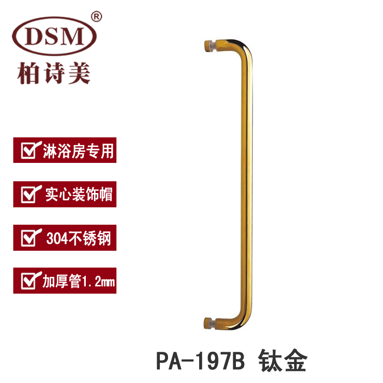 Hotel bathroom glass door handle thickened 304 stainless steel door handle PA-197