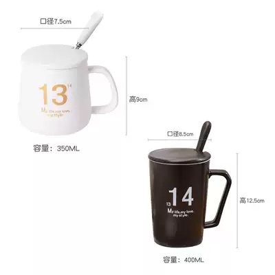 Original ceramic cup 1314 water cup Coffee cup Creative mug Couple cup Pair cup with lid Spoon customization