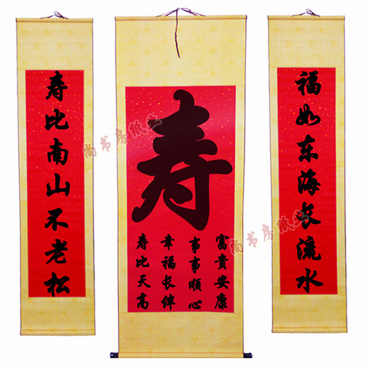 Wedding celebration birthday imitation Aya framed four-foot large red gilded blank scroll in the middle hall pairing calligraphy rice paper picture scroll