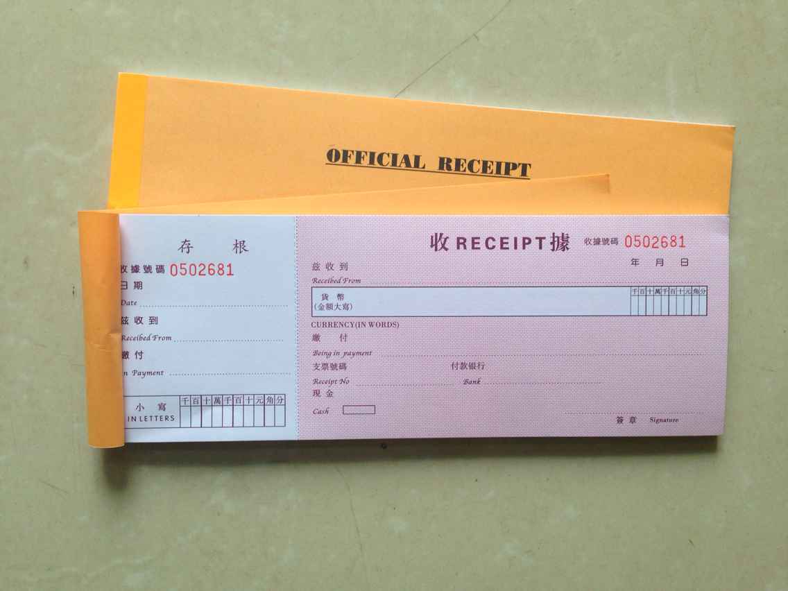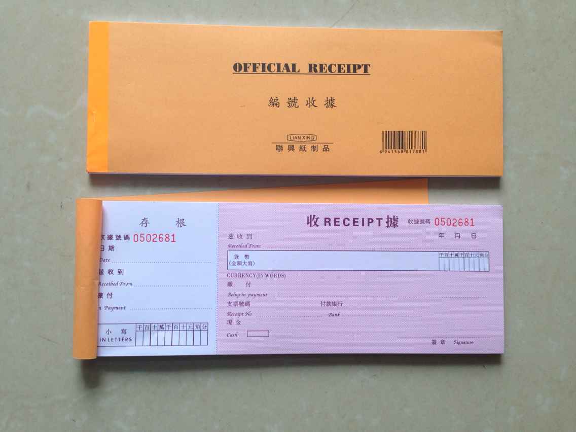 Lianxing XING Number Receipt OFFICIAL RECEIPT Chinese and English Number Receipt