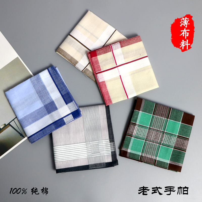 Men's handkerchief send the old man with pure cotton cloth nostalgic sweat-absorbing lady sweat-wiping square towel Old-fashioned soft thin handkerchief cotton