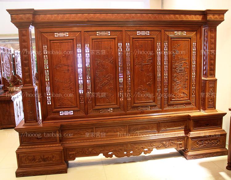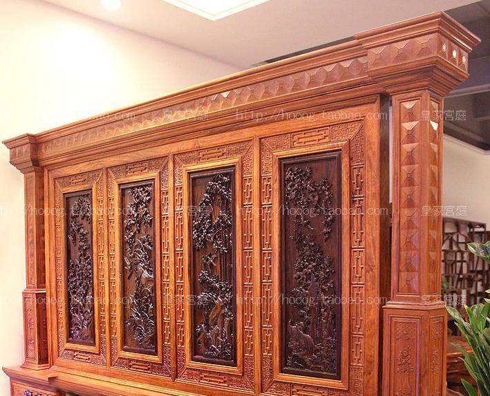 Red Wood Vintage Furniture Pure Solid Wood Partition Screen Africa Yellow Flowers Pear Black Sandalwood Luxury Eurostyle Seat Screen Bifacial Engraving