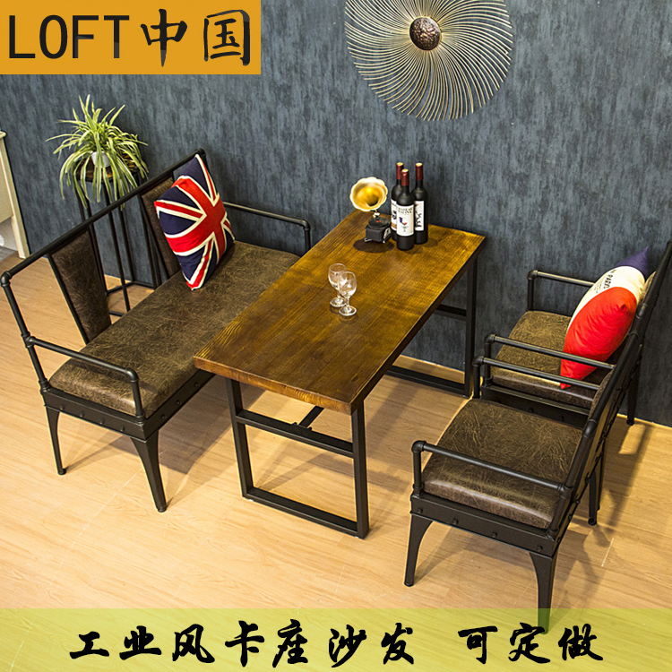 Theme restaurant dining deck sofa wrought iron loft industrial style retro casual bar cafe table and chair combination