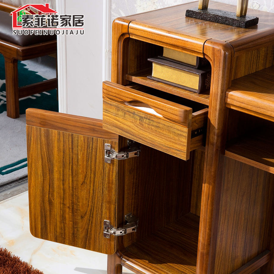 New Chinese style solid wood dressing table dressing table storage cabinet modern minimalist bedroom furniture black gold wood color board wooden dressing table