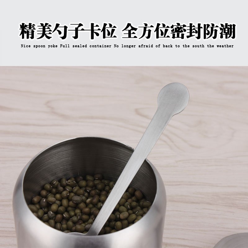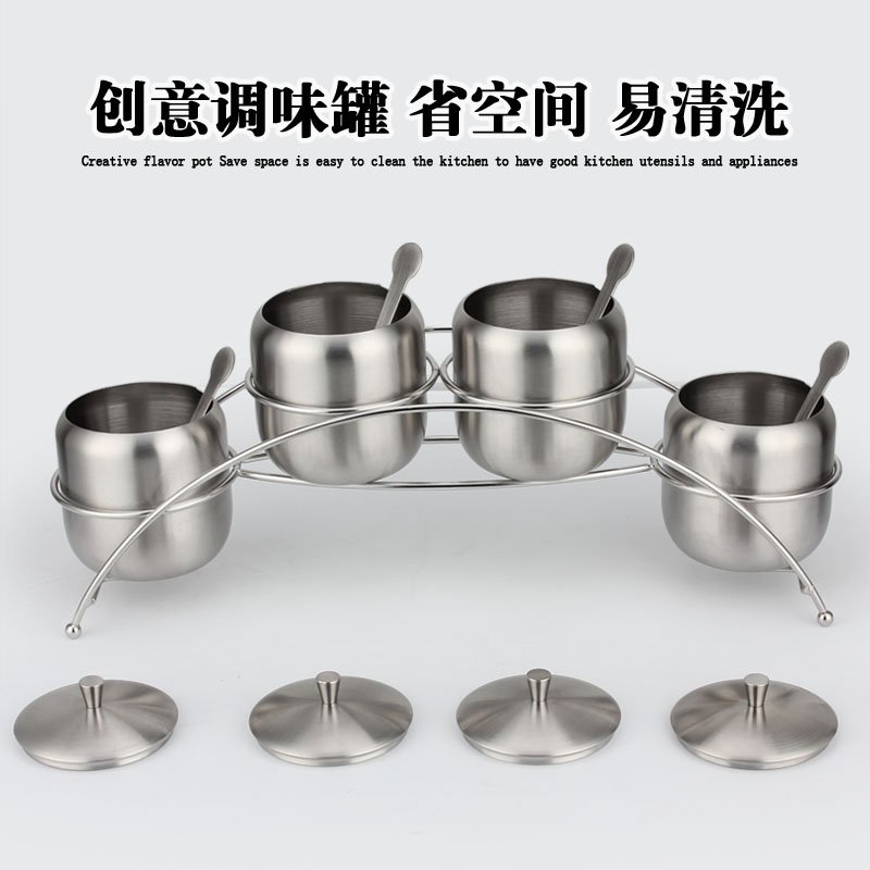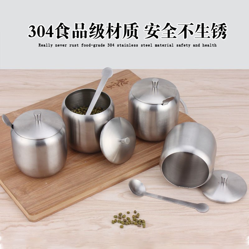 304 stainless steel seasoning box condiment jar integrated Dogg with spoon lid Salt MSG Light and luxurious kitchen set