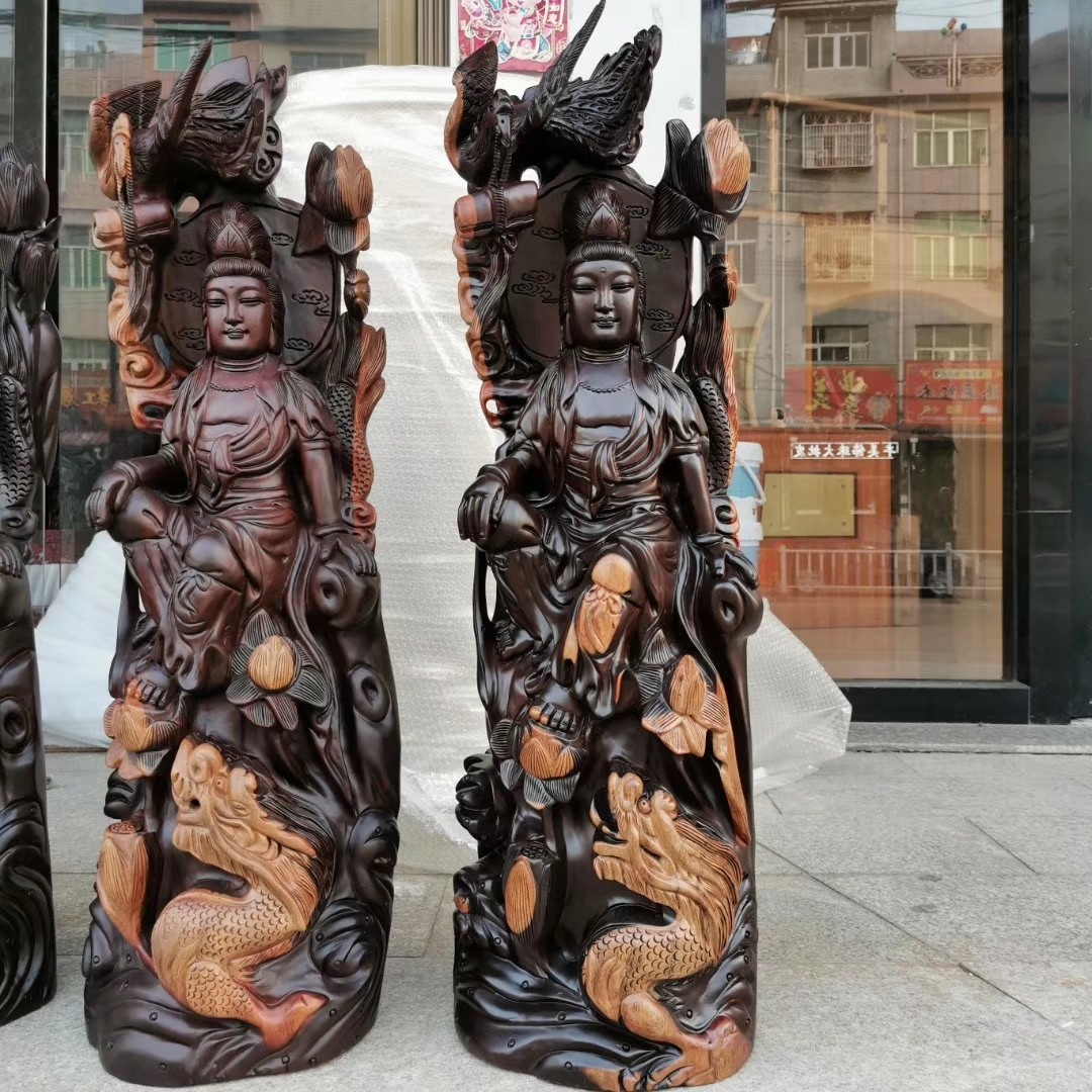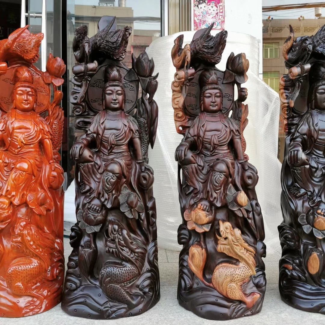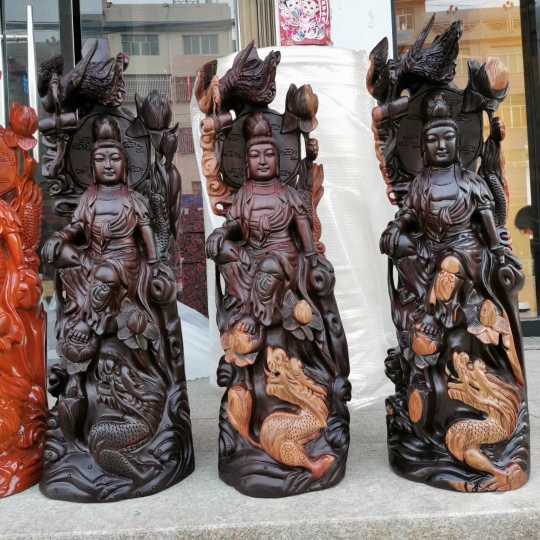 Wooden sculpture Guanyin Buddha at the mercy of a dragon and an Fengho flower at the Buddha's Bodhisattva-BodhisattBodhisattva Buddha's home Buddha's home Buddha