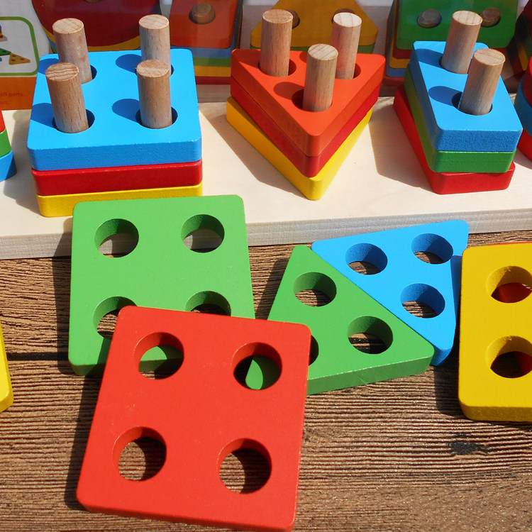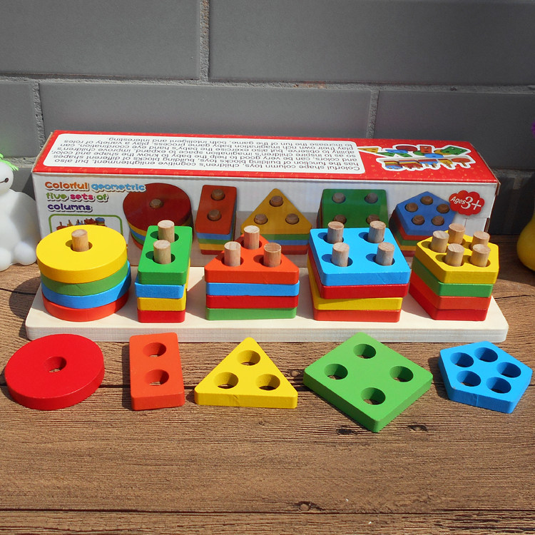Early teach Teach Puzzle Force Development Nursery School Children Wooden Toys Color Geometric Shapes Board Five Sets of Pillar Building Blocks