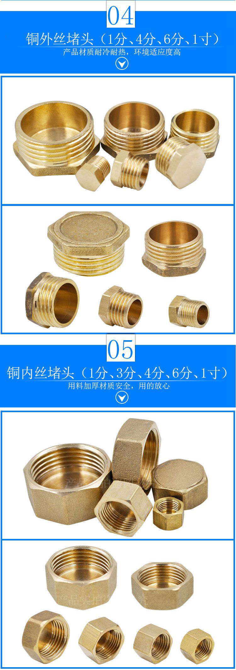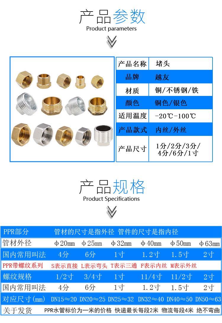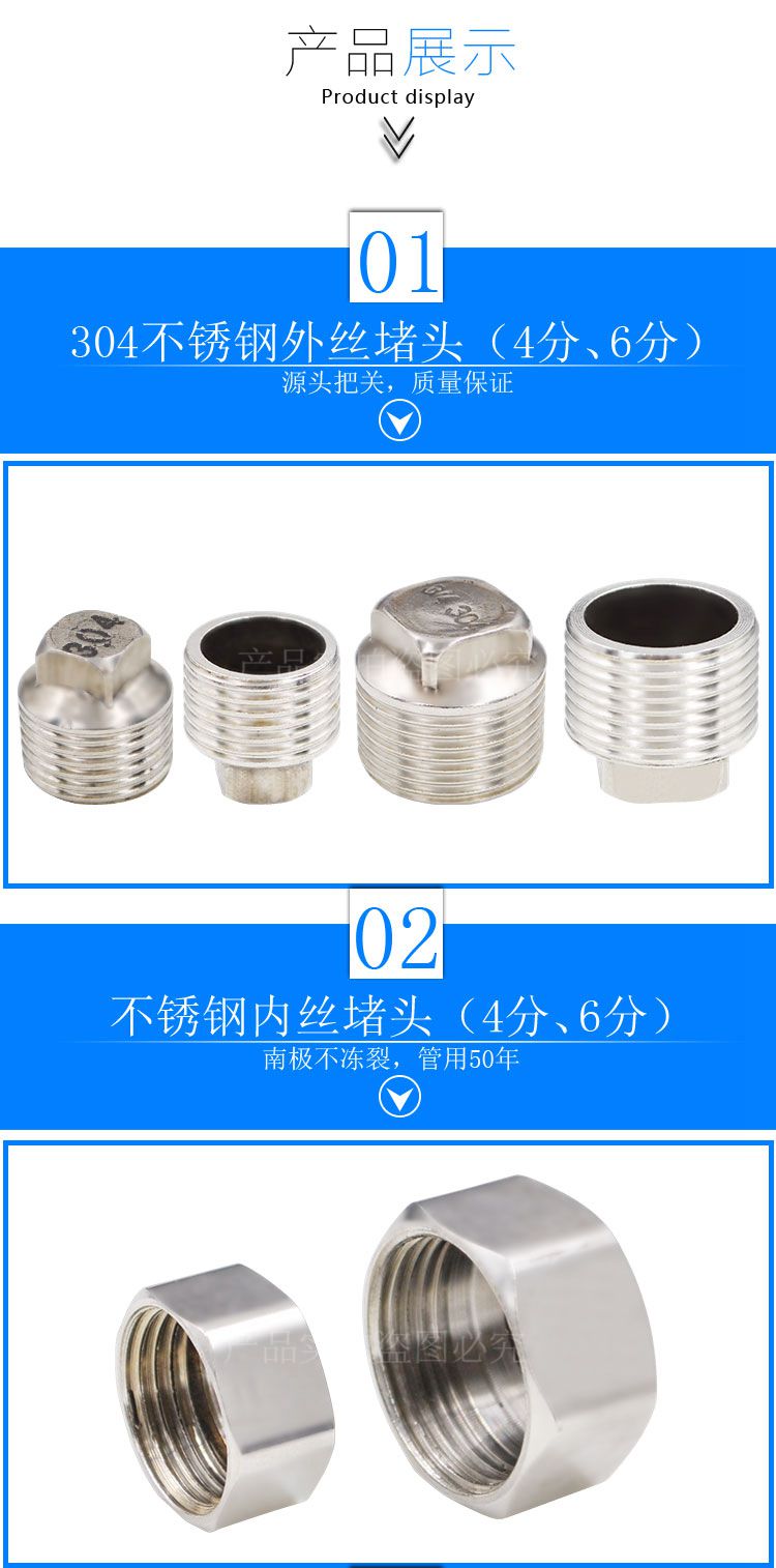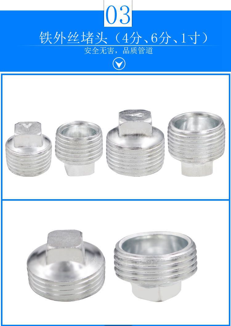 Copper stainless steel internal wire external wire double male screw resistance flow plug pipe cap 4 points DN15 pipe plug tap water pipe connector accessories