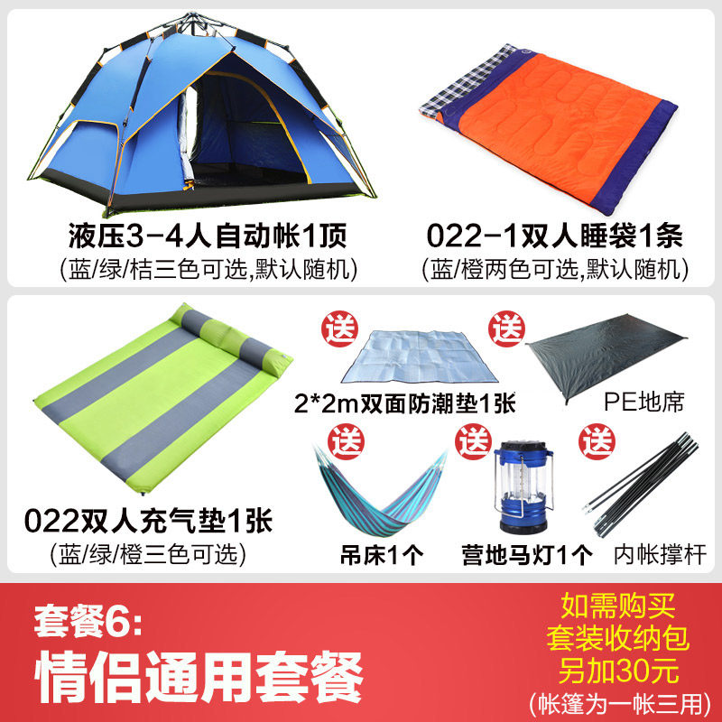 Square Top Hydraulic Fully Automatic Tent Outdoor 3-4 People Couple Double Suit Anti-Rainstorm Double Camping Speed Open