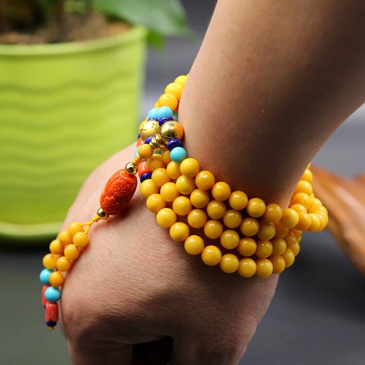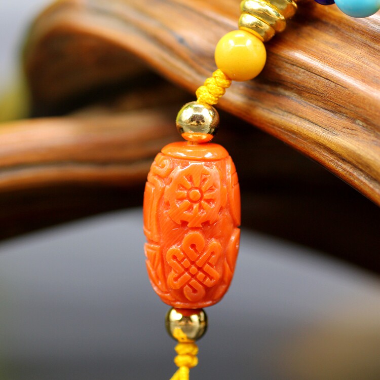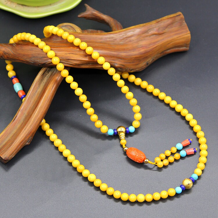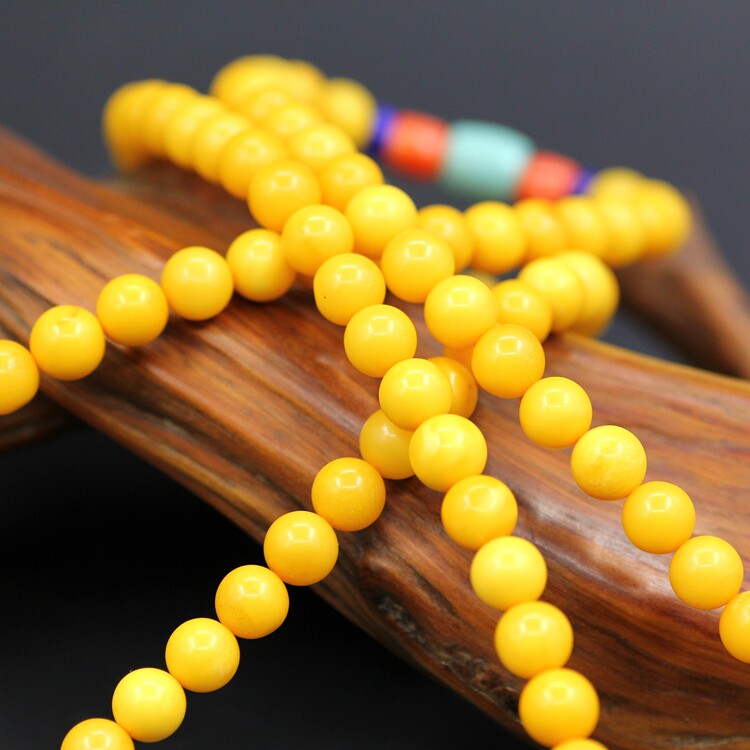 Natural chicken oil beeswax with 24K pure gold six-character mantra natural sea red stone beads 7 5m