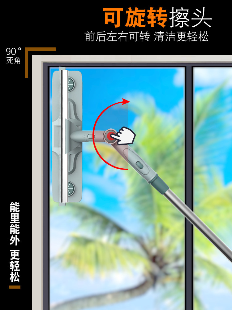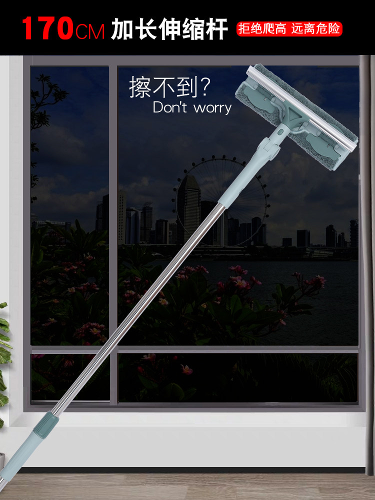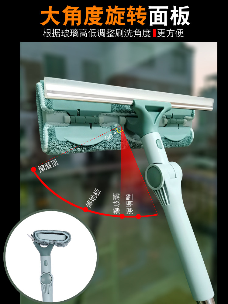 Glass cleaner Telescopic rod Double-sided window cleaner wiper Glass brush scraping glass cleaning tools Household high-rise buildings