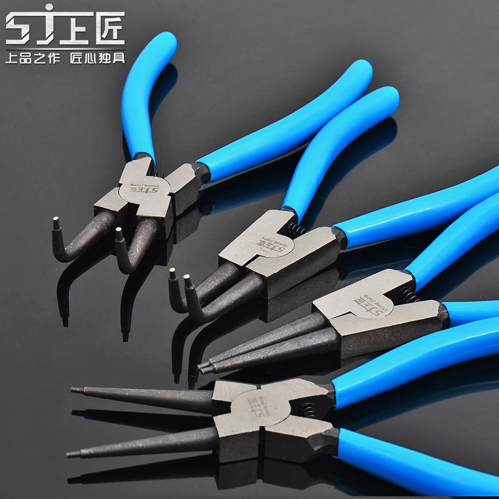 Shang carpenter 7 inch C-type buckle pliers multi-function snap ring pliers Snap yellow pliers inner and outer support outer and inner straight outer curved inner curved snap spring pliers