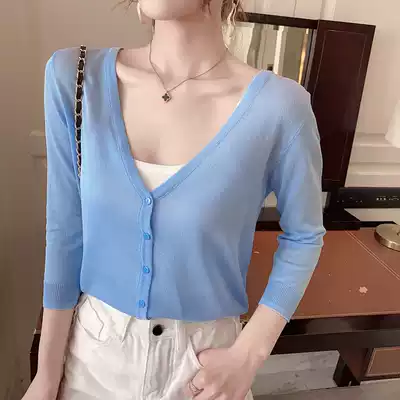 New women's summer sweater women's cardigan thin Korean long sleeve shawl outside air conditioning sunscreen sweater coat
