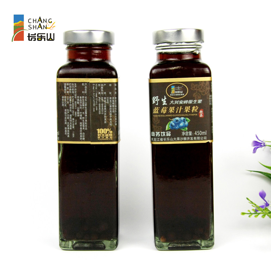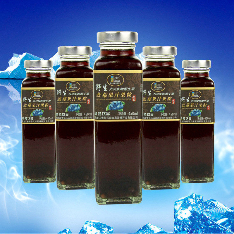 Changle Mountain blueberry juice drink glass bottle Daxinganling wild juice drink 450mlX6 bottle