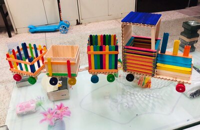 Ice cream stick DIY handmade model Kindergarten handmade small train model Thomas model train