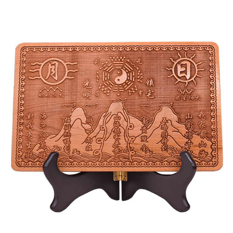Zhengzong Peach Wood Mountain Sea Town Swing Piece Eight Divination Mirror Pendant Town House Building Sky Chopping Room Outside Doorway Wood Carving Ornaments