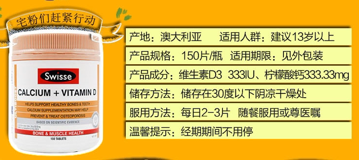 Australian Swisse calcium tablets vitamin D adult pregnant women calcium supplement 150 capsules