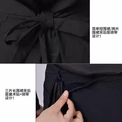 Black three-piece long apron without logo black three-piece long apron with logo black two-piece apron black apron