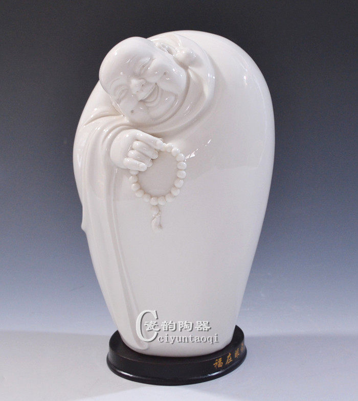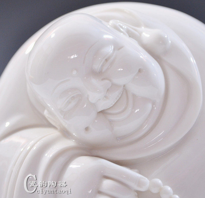 Dehua white porcelain blessing in sight Maitreya Laughing Buddha ornaments take beads Maitreya Haha Buddha craft gift ornaments ceramics