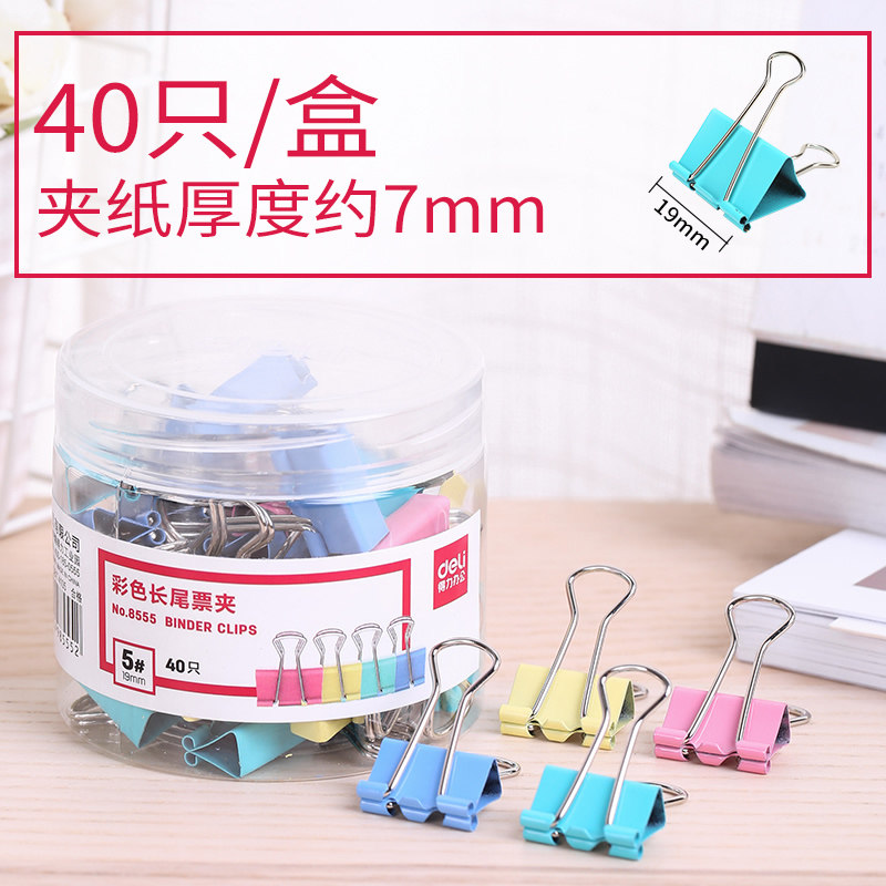 Deli long tail clip Large folder Color stationery dovetail clip Medium mixed small clip Small iron ticket clip Bill metal paper clip Book holder Phoenix tail clip Mixed office supplies Multi-function