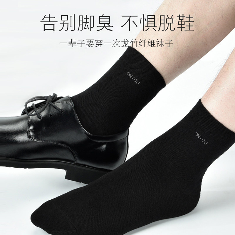 Olinya Bamboo Pulp Fiber Men Socks Men's Deodorant Spring Summer Thin Stockings Sweat-Breathable Pure Color Bamboo Charcoal Midcylinder Short Socks