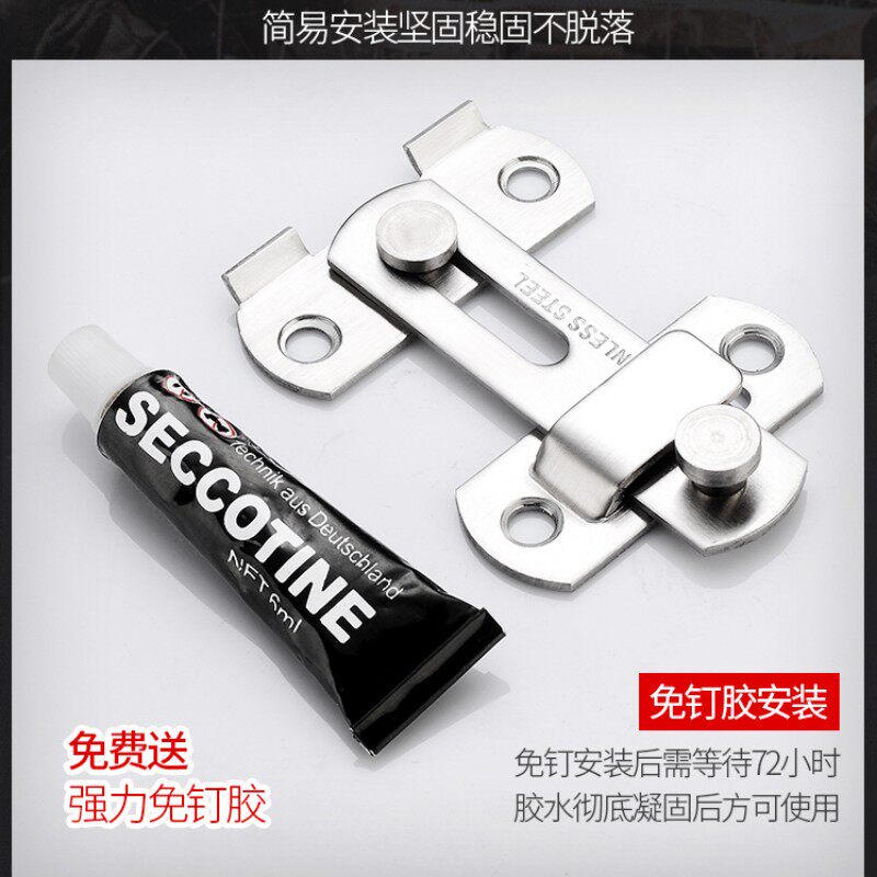 Free Punch Stainless Steel Door Buckle Latch Bolt Lock Old Door Lock Adhesive Type Push-and-pull Shifting Room Door Bolt Door Bolt Door Bolt