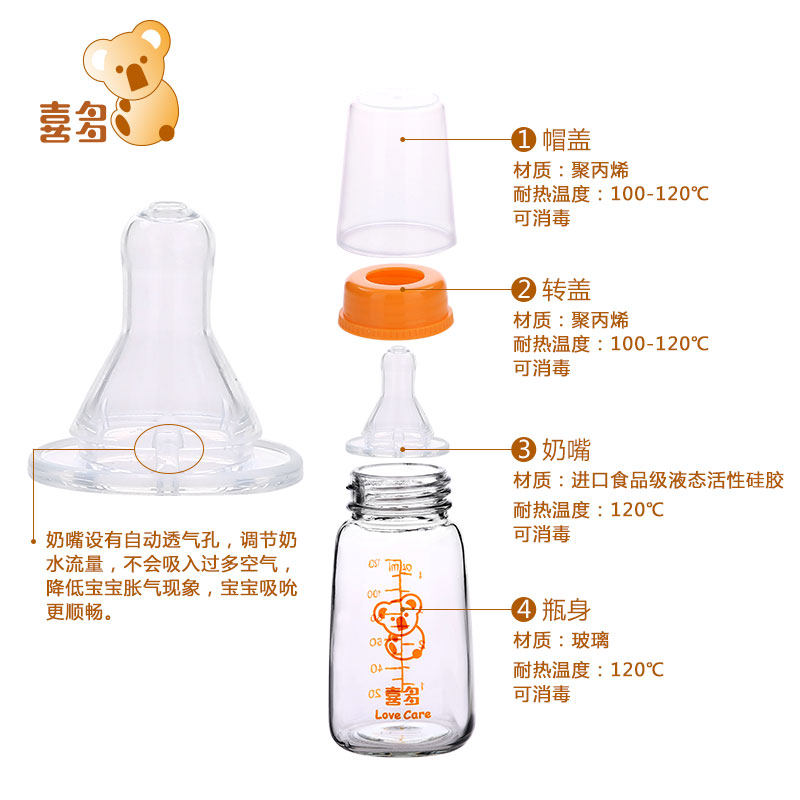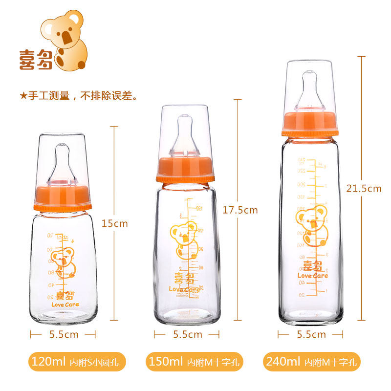 Xiduo baby standard caliber glass bottle baby newborn with pacifier 120ML150ML240ML Promotion