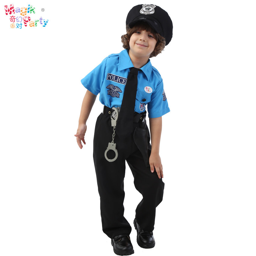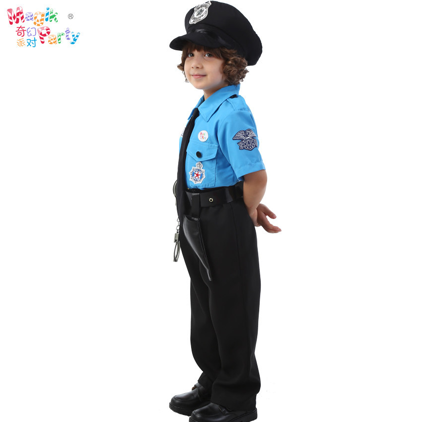 Halloween children's performance costumes Cosplay show clothes boy black cat police sheriff officer dress