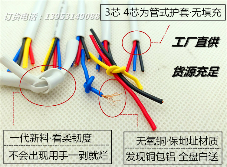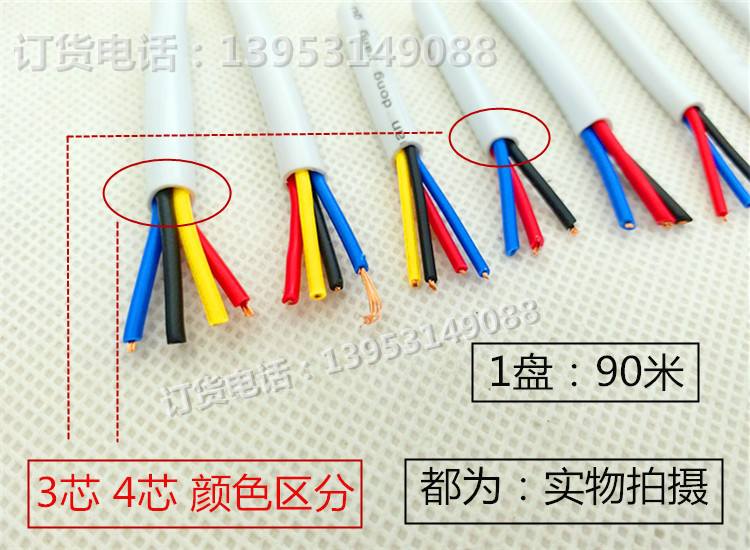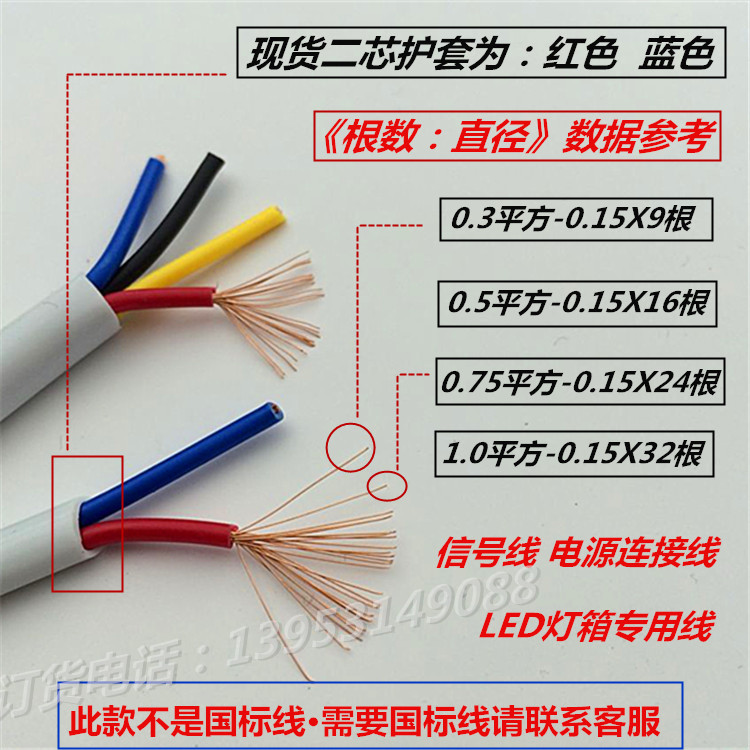 ZR-RVV2 core X0 5 squared pure copper sheath wire power cord Red black parallel line LED monitor power cord