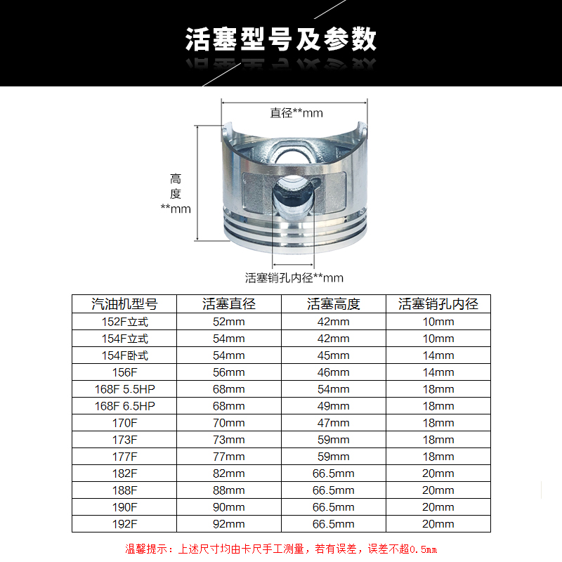 Petrol Dynamo Pumps Accessories 152F168F170f177F188F190GX160 390 2 5kw Pistons