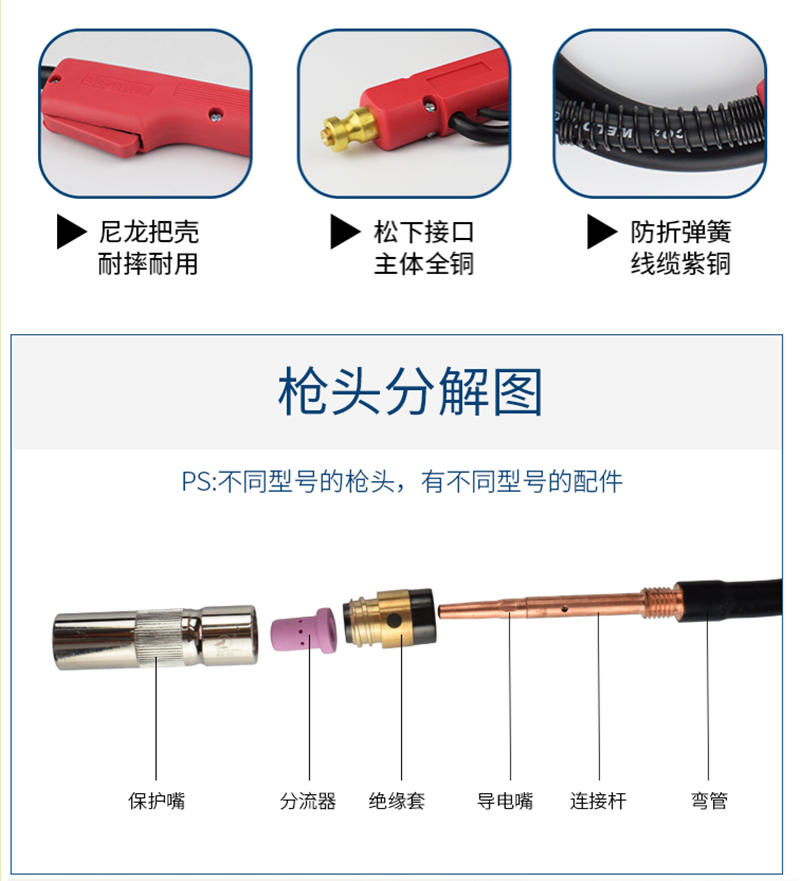 Two-Bond Welding Guns Carbon Dioxide Gas Fidelity Welding Machine Accessories KR 200A 350A 500A Dioxide Welding Guns