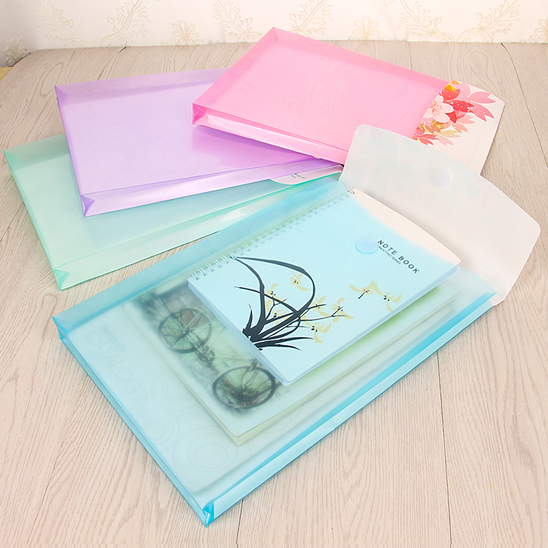 Office adhesive buckle transparent three-dimensional document bag A4 plastic document data file bag storage bag Student paper bag