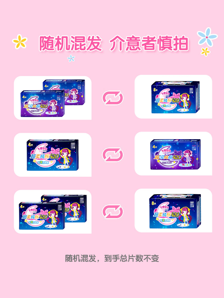Seven degrees of space sanitary napkin girl cotton sweet sleep 420 new product 7-pack combination