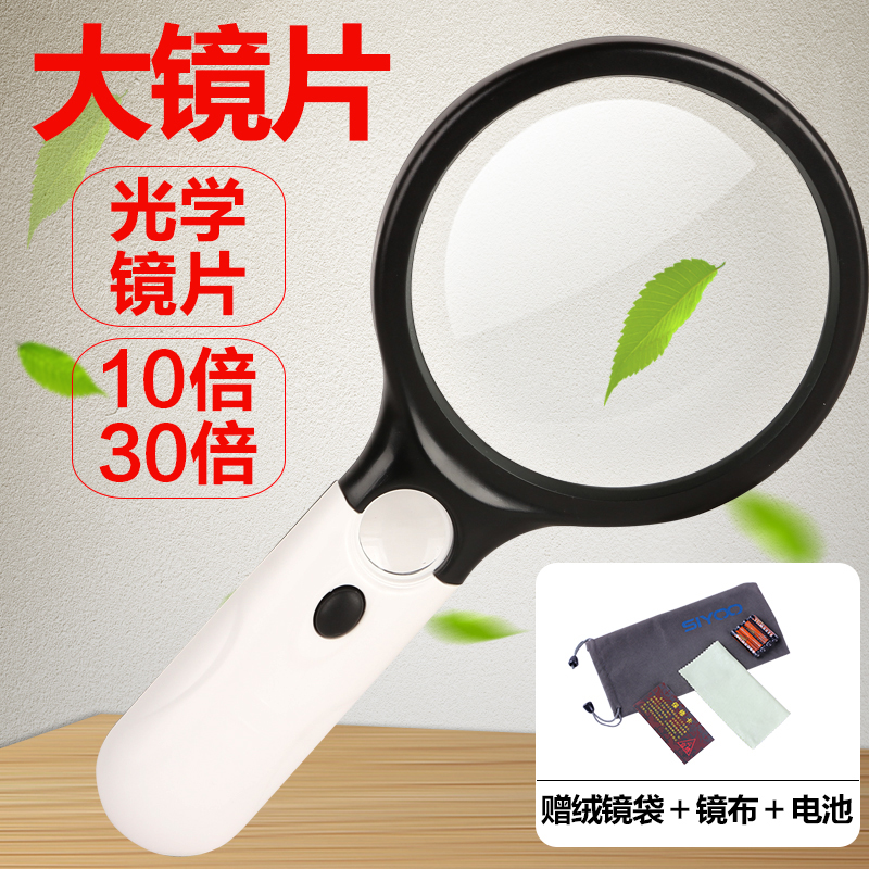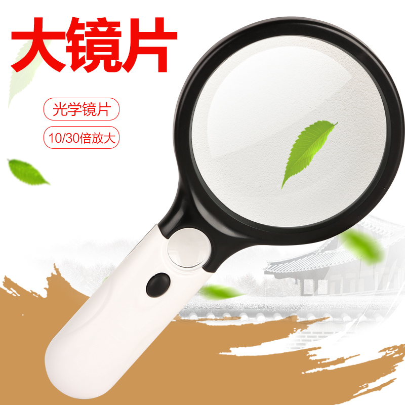10 times handheld HD reading LAMP magnifying glass 30 times magnifying glass 100MM large mirror partition