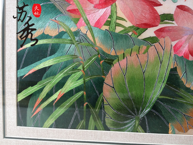 Flower and bird handmade brand embroidery Suzhou embroidery finished product study living room porch home decoration painting lotus flower and bird