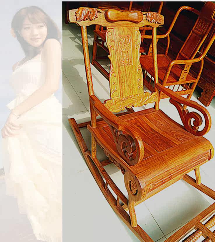 Redwood Hedgehog Rock Chair Living Room African Yellow Flower Pear Lounge Chair Chinese Solid Wood Chair Lazy Balcony Rocking Chair