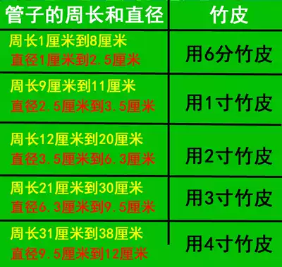 A piece of bamboo skin size 6 points a piece of bamboo skin size 1 inch a piece of bamboo skin size 2 inches a piece of bamboo skin size 3 inches a piece of bamboo skin size 4 inches a small bamboo leaf a common large bamboo