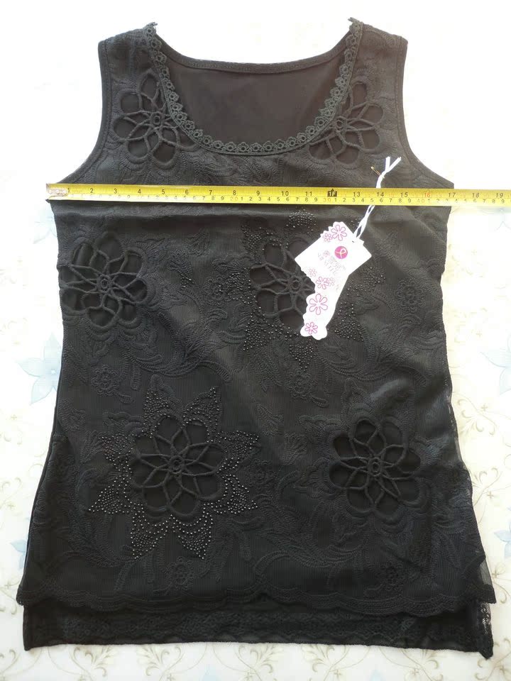 Women's summer Korean version of the women's bottoming shirt loose lace diamond double-layer mesh camisole luxury snow 206
