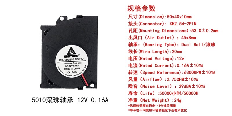DC12V 50MM 40MM 4 5 cm cm Double ball bearing blower turbine small heat dissipation fan