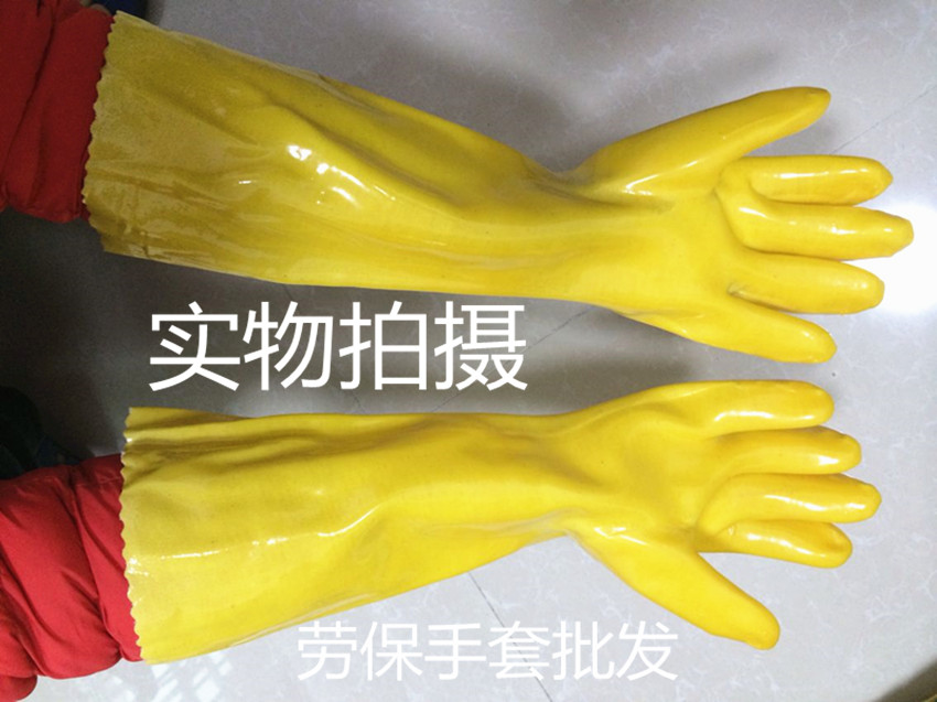 Shuts cotton wool impregnated plastic gloves 45cm acid-resistant, waterproof and waterproof industrial protective chemical durable anti-slip gloves