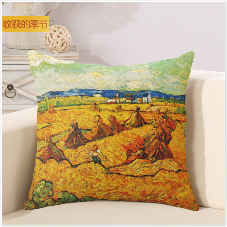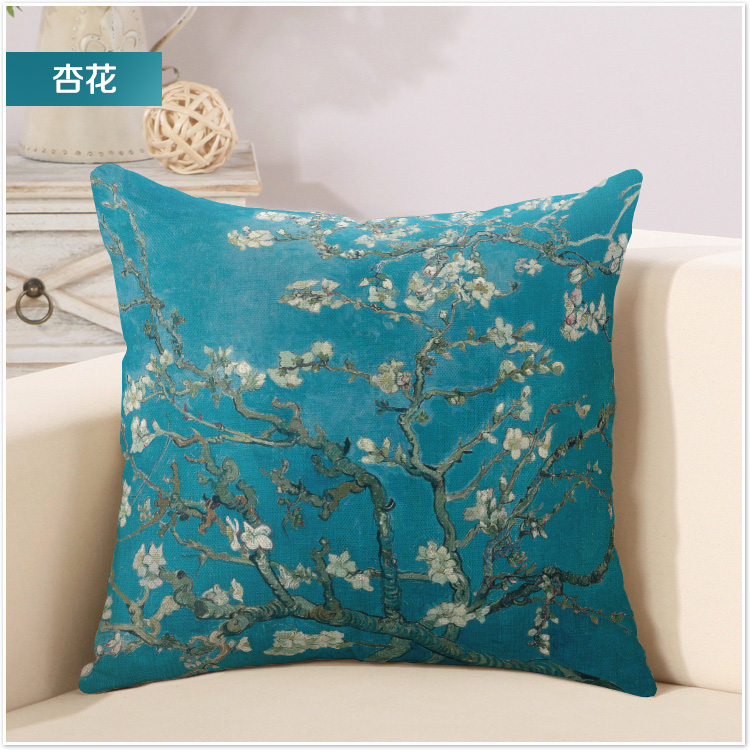 World Famous Painting Sunflower Star Moon Night Almond Blossom Van Gogh oil painting Pillow Containing Core Sofa Cushions Cover Cotton Linen headboard