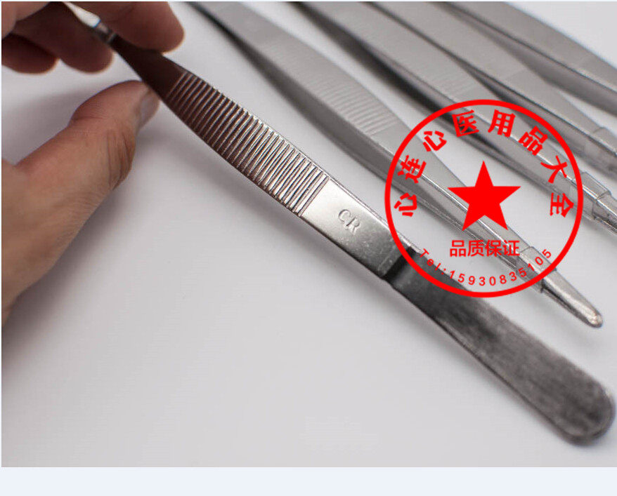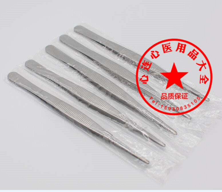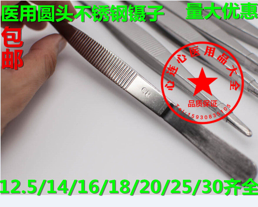 Medical tweezers Stainless steel round head with tooth alcohol cotton ball tweezers 12 5 - 30CM anti - slip and teeth